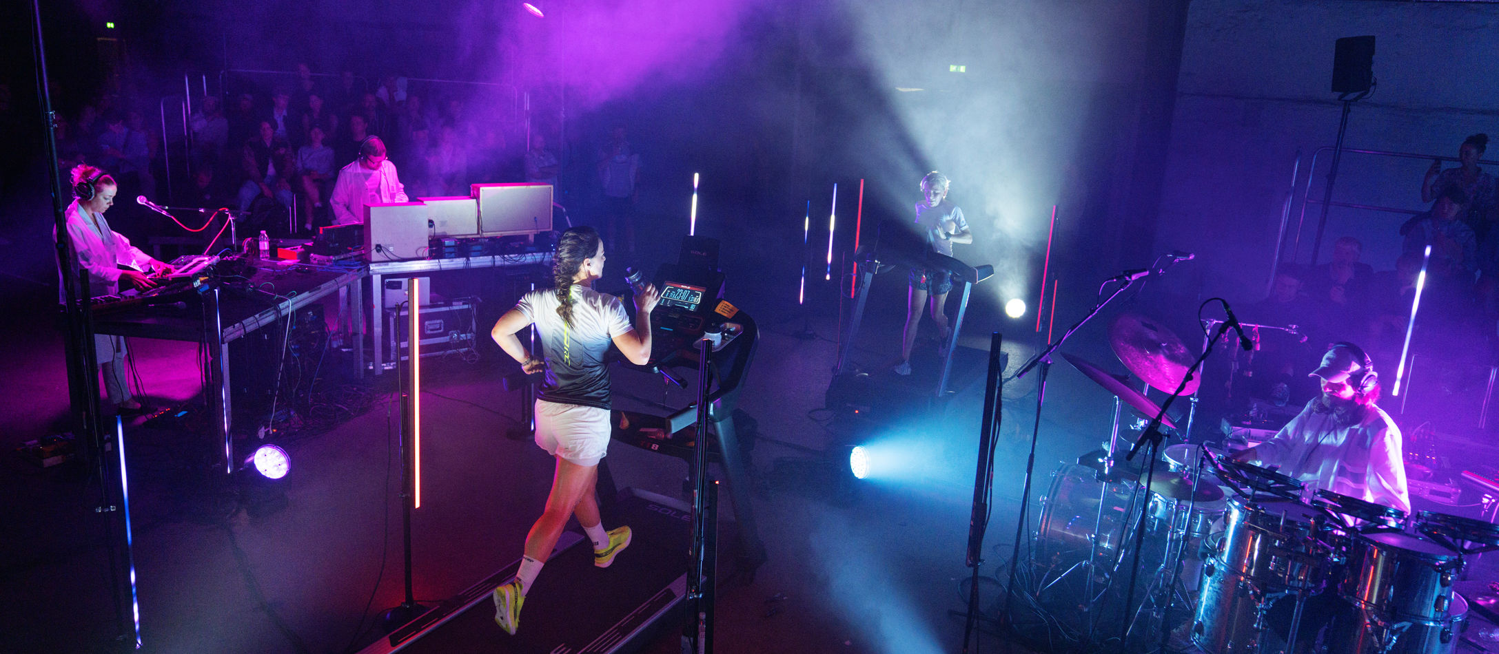 I samme ånd skabte hun sidste år en “løbesymfoni” til udstillingen ‘GO EXTREME’ i Kunsthal Aarhus, der havde fokus på ekstremsport og kunst. Her undersøgte hun muligheden for at understøtte de forskellige faser, en maratonløber gennemgår. Og ud af det kom en koncert på fire timer, hvor to kvinder løb de knapt 43 km. på løbebånd, mens hun med to kollegaer improviserede et lydværk baseret på deres fysiske udfoldelse.