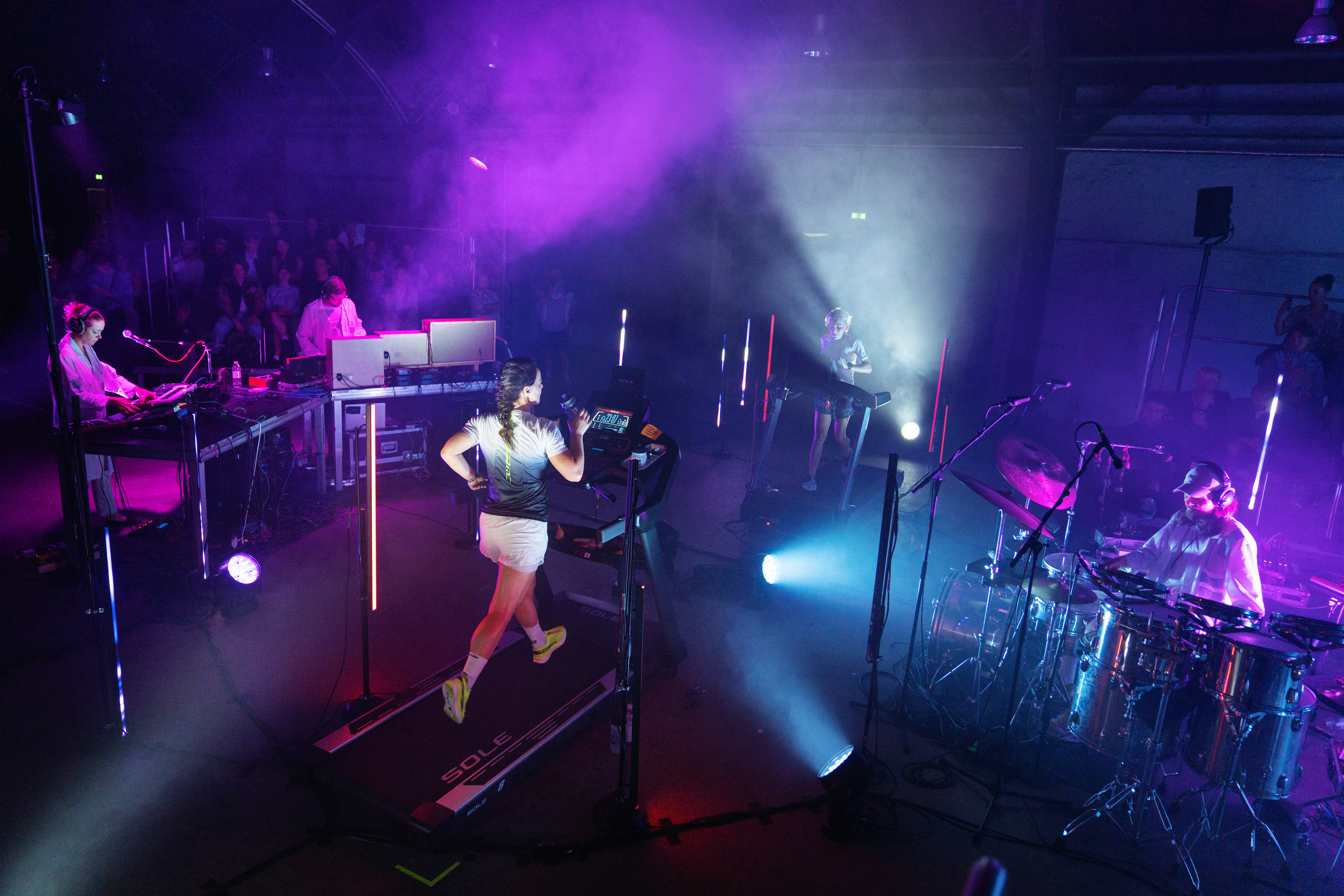 I samme ånd skabte hun sidste år en “løbesymfoni” til udstillingen ‘GO EXTREME’ i Kunsthal Aarhus, der havde fokus på ekstremsport og kunst. Her undersøgte hun muligheden for at understøtte de forskellige faser, en maratonløber gennemgår. Og ud af det kom en koncert på fire timer, hvor to kvinder løb de knapt 43 km. på løbebånd, mens hun med to kollegaer improviserede et lydværk baseret på deres fysiske udfoldelse.