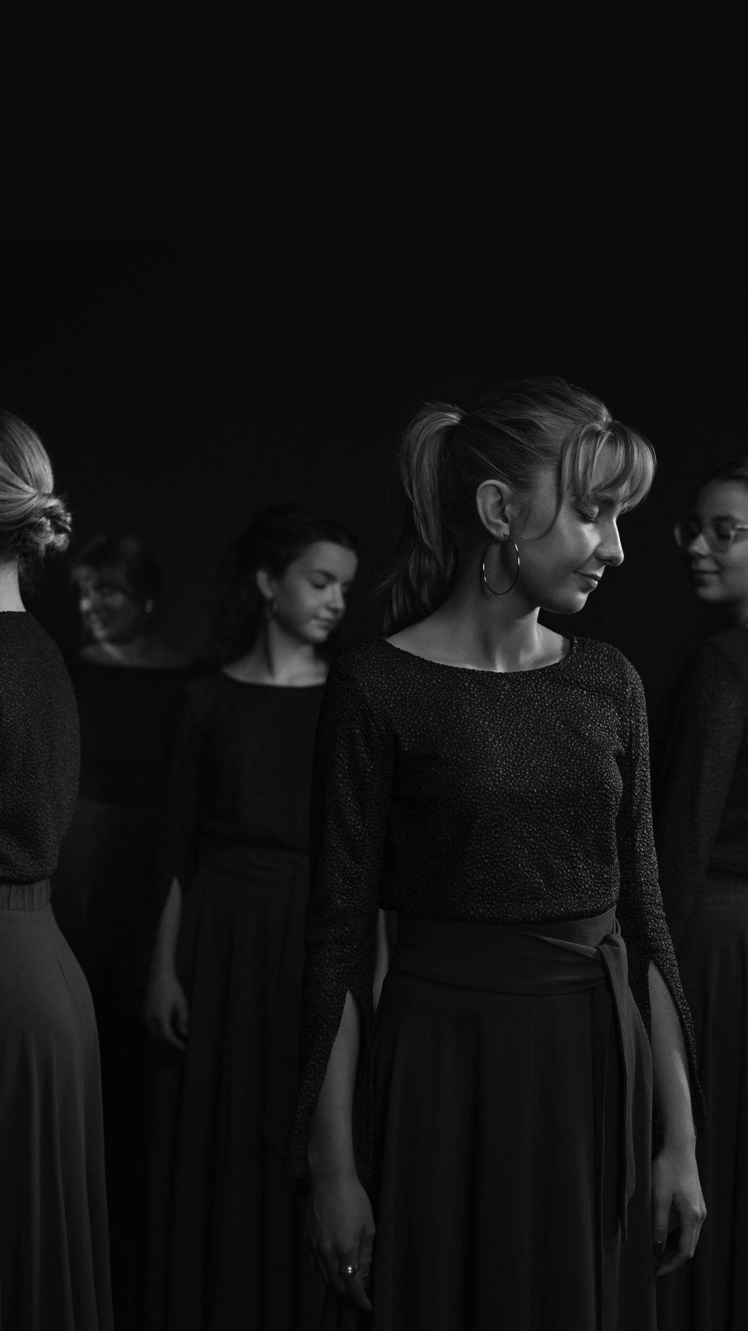 At synge sammen i over en time uden at kunne se er en helt særlig disciplin. Sangernes følsomhed over for hinanden og musikken udfordres, hvor selv den mindste forstyrrelse kan bryde det skrøbelige musikalske fokus. I mørket må sangerne stole på sig selv og hinanden, lade stemmerne følge åndedræt og indre fornemmelser. Det er en intens og krævende opgave, der på smukkeste vis folder sangernes fælles styrke ud og fremhæver alt det, der gør korsang så dybt bevægende. Også dirigenten må slippe kontrollen og give plads til musikkens og korets frihed – en tillid, der får både kor og musik til at blomstre.